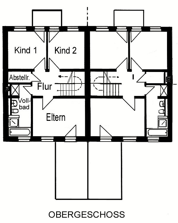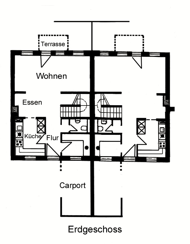 Jedes Reihenhaus besteht aus:- 6 Zimmer